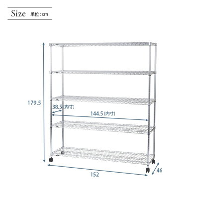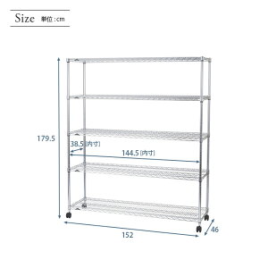 【送料無料】 [25mm] ルミナスレギュラー スチールラック 幅150 奥行46 高さ180 5段 キャスター付 ◇ 幅152×奥行46×高さ179.5cm NLH1518-5