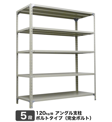 スチールラック 業務用 120kg/段完全ボルト 実(外)寸法:幅88.5cm×奥行46cm×高さ180.1cm【5段(枚)】自重(26.1)kg【単体形式】